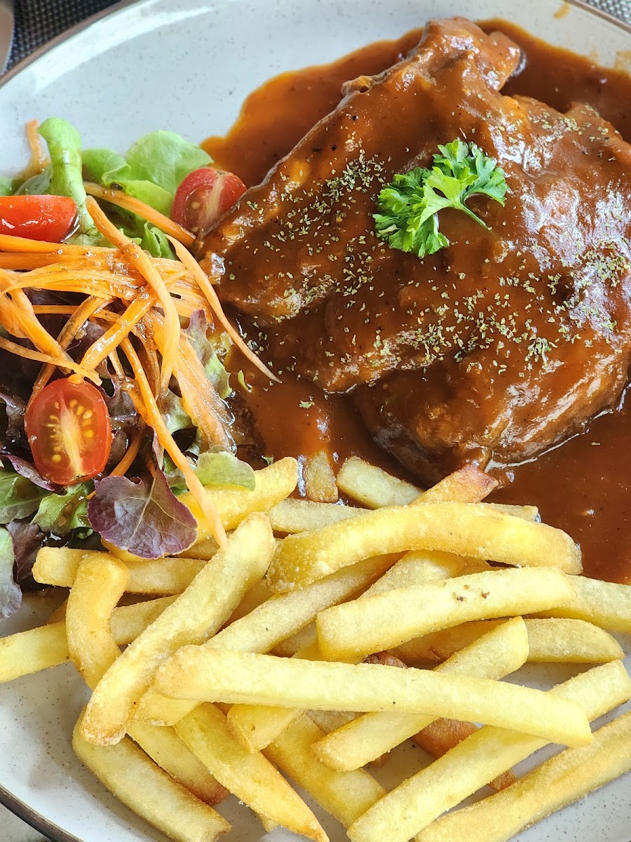 The menu is diverse, balancing Asian, Thai, and Western dishes without feeling overwhelming. Options like truffle linguine, rack of lamb, and mixed berries pancakes sit comfortably alongside more familiar casual eats such as chicken wings with fries and Caesar salad. Guests who have dined here speak to well-prepared flavors and thoughtful presentation, with some highlighting standout dishes like green curry and fried pork belly with spicy sauce. Specialty coffee and a selection of refreshing drinks, including passion fruit soda and local beers, also feature prominently—a solid draw for both casual coffee breaks and shared meals.